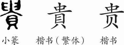 “贵”是形声字。隶变后楷书写作“貴”。汉字简化后写作“贵”。