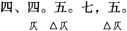 本格双片四十九字。全词同韵,仄韵,韵字可上声、可去声。凡五字句首字均为领字。另有四十七字体,见张先、黄庭坚、赵彦端等词。
