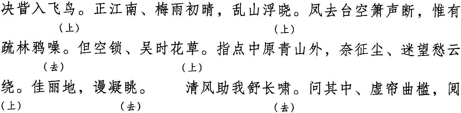 本格双片一百一十六字。全词同韵,仄韵,韵字可上声、可去声。另有一百一十四字、一百一十五字体,且句式、韵脚略异,见苏轼、赵长卿等词。韵段内可撤句造句,但须保持其字数不变,见史达祖、辛弃疾等词。本词又名《贺新凉》 《金缕曲》 《乳燕飞》 《貂裘换酒》 《风敲竹》《雪月江山夜》等。此调用入声韵,其音节尤为高亢,故南宋豪放派词人喜作之。