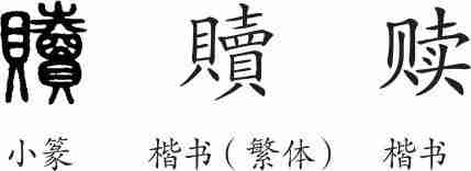 “赎”是形声兼会意字。小篆从貝,賣声,賣兼表钱物交换之意。隶变后楷书写作“贖”。汉字简化后写作“赎”。