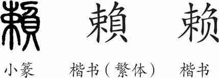 “赖”是形声字。小篆从貝,剌声。隶变后楷书写作“賴”。汉字简化后写作“赖”。