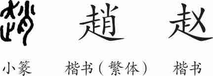 “赵”是形声字。小篆从走,肖声。隶变后楷书写作“趙”。汉字简化后写作“赵”。