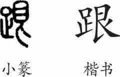 “跟”是形声兼会意字。小篆从足,艮声,艮(人扭头后看)兼表向后之意。隶变后楷书写作“跟”。