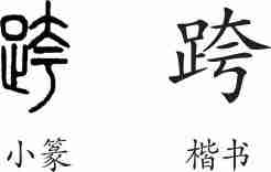 “跨”是形声兼会意字。小篆从足,夸声,夸兼表张大之意。隶变后楷书写作“跨”。