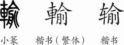 “输”是形声字。小篆从車,俞声。隶变后楷书写作“輸”。汉字简化后写作“输”。