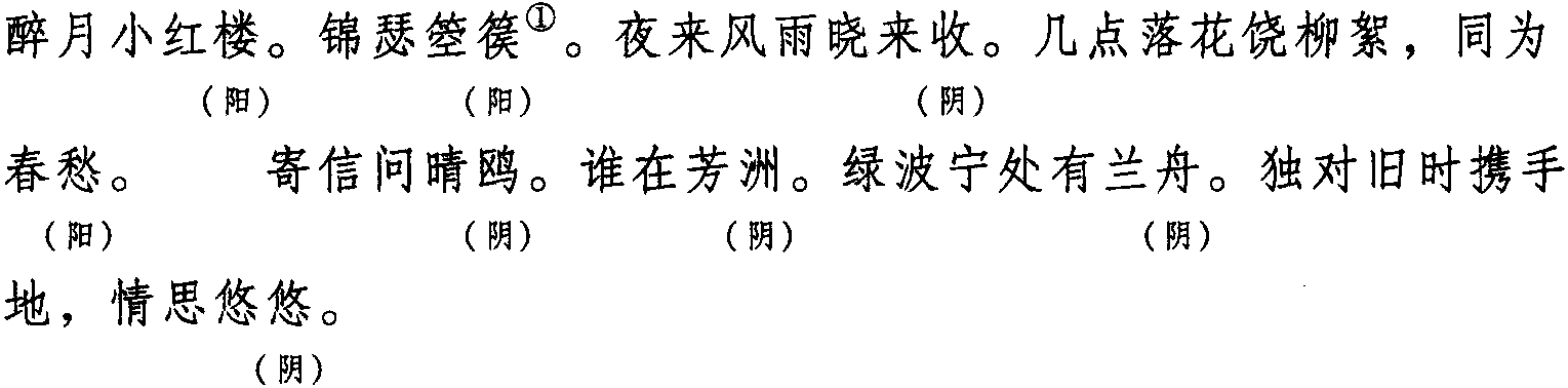 本格双片五十四字。全词同韵,平韵,韵字可阴平、可阳平。