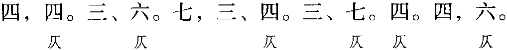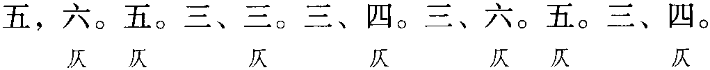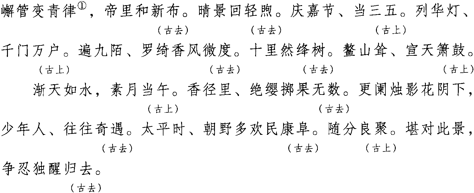 注: 一、本词例押古上声 “麌” 韵,古去声 “御” “遇” 韵。因 “麌” “御”“遇” 在现代韵中属“居” 韵,故全调可押衣部“居” 韵。又因韵字“布” “五” “户” “度” “树” “鼓” “午” “数” “阜” 在现代韵中属“姑”韵,“煦” “遇” “聚” “去” 在古韵中与“树” “恕” 同韵,而“树” “恕”属现代韵“姑”韵,故全调亦可押姑部“姑”韵。