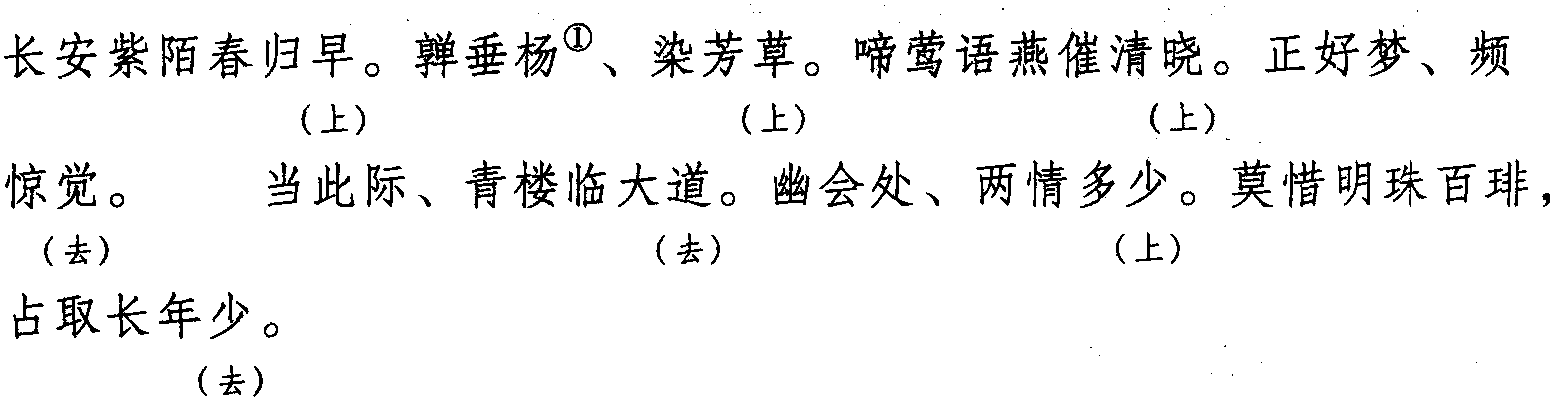 注:一、本词例押高部“高”韵。 二、①亸: 音“duǒ”。下垂。 |