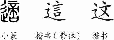 “这”是形声字。小篆写作“適”,表示前往。隶变后楷书写作“這”。汉字简化后写作“这”。