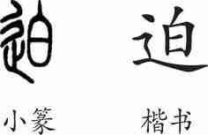 “迫”是形声字。小篆从辵(辶,表示走路),白声。隶变后楷书写作“迫”。