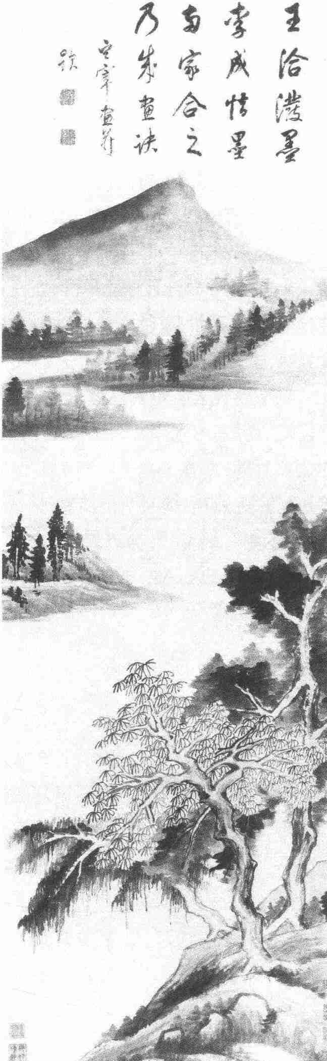 董其昌是明代中叶以后在画史上有特殊成就的重要作家。他把中国绘画笔墨和色彩技法,从传统被动的反映方式,引向自觉的纯艺术思考。他要求画家有艺术表现上的主宰作用,把绘画自身置于独立的构思形式上。艺术的形式,是画家素养、情性、灵感的形象表露。主宰在心而心含万象。这个万象,当然也包括传统,但就如他自己所说:“神仙自能拔宅,何事傍人门户。”(见《〈董其昌容台集〉序》)由于董其昌所取者广,对于后人的影响也自是不同。得其“法”者,有四王(王时敏、王鉴、王翚、王原祁)这样娴熟技巧、出手成章的画家;得其“道”的,有八大、石涛这样天马行空、独行其是的作者。而后世之贬董其昌的,往往只见口不离玄宰的“四王”徒具古人形骸的一面,而不知八大、石涛,原也是取曹溪一滴而放荡江湖的事实。