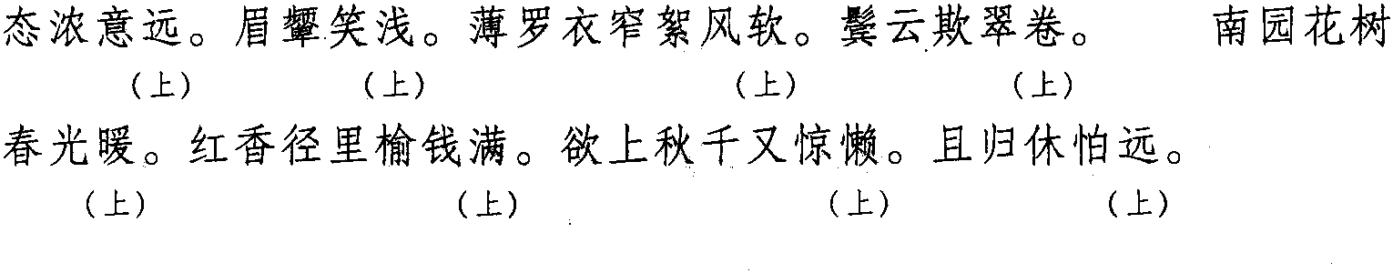 本格双片四十六字。全词同韵,仄韵,韵字可上声、可去声。另有双片三十八字,平韵或平仄韵互叶体,见米芾、戴复古等词。本词又名《醉思凡》 《凌波曲》 等。