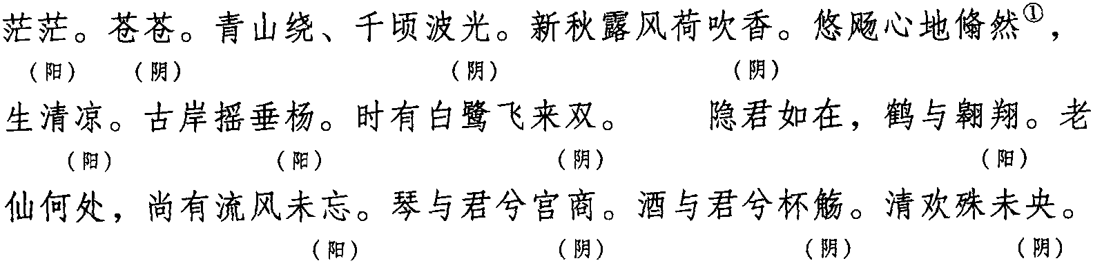 注: 一、本词例押方部“方” 韵。“忘” “浪” 在古韵中属 “阳” 韵,而“阳”在现代韵中属“方”韵,故“忘” “浪”亦属“方” 韵。