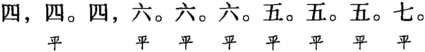 本格双片九十一字。全词同韵,平韵,韵字可阴平、可阳平。此词牌为苏轼依琴曲首创。苏轼词上片第三句为“二三二” 句式,且句句押韵。本调格律尤为婉丽、顺畅,最能表达闲适之心境。