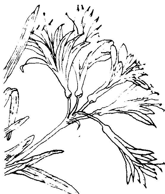 金灯花一名忽地笑、铁色箭、老鸦蒜、黄花石蒜,系石蒜科多年生草本植物。春天其花丛生数叶,光润发亮。“翠叶森森比剑枝”(宋·洪适)夏秋之时,挺立一茎。“疏茎秋擢翠。(唐·卢殷)花着其上,大约四、五朵,宛如吊灯。其色红艳夺目。”其时叶已枯萎。所以唐代女诗人薛涛咏曰:“阑边不见蘘蘘叶,砌下唯翻艳艳丛。”《花镜》曰:“深秋独茎而上,末分数枝,一簇五朵,正红色,光焰如金灯。”宋代大诗人晏殊将其比作伴读的夜灯,巧借花名,含义颇深。