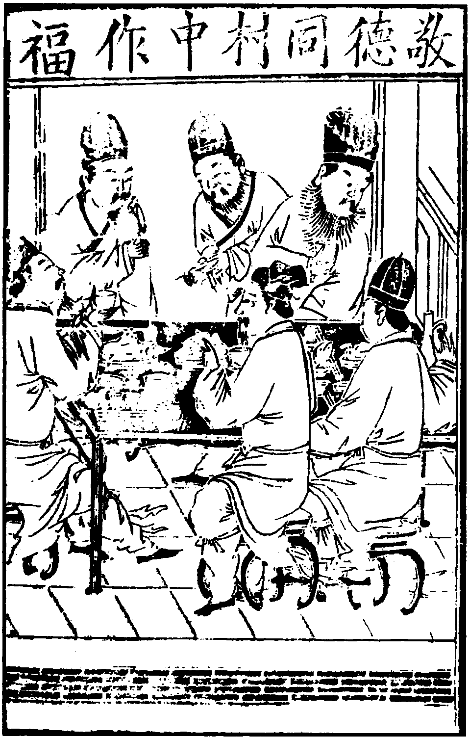 【前腔】极品官,怎比俺犁锄汉。到秋成,多消散。邀村社,邀村社老幼同欢,闹咳咳笑语喧阗。(合前)