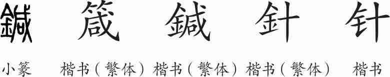 “针”是形声字。小篆从竹,咸声,表示针最初是用竹子做的。隶变后楷书写作“箴”;后改为“鍼”,从金。汉字简化后写作“针”。