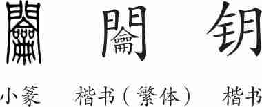 “钥”是形声字。小篆从門,龠声。隶变后楷书写作“