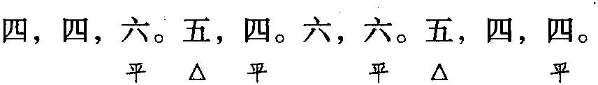 本格双片九十八字。全词同韵,平韵,韵字可阴平、可阳平。凡五字句首字均为领字。另有一百字、一百零一字体,见柳永、司马光等词。此调又名 《锦堂春慢》。另有小调双片四十八字,平韵体,又名 《乌夜啼》。