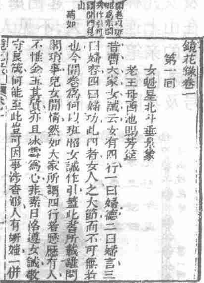清代白话长篇世情小说。一百回。作者李汝珍(约1763—约1830),字松石,号松石道人,人称北平子,直隶大兴(今北京市大兴县)人。成书于清嘉庆二十年(1815)左右。
