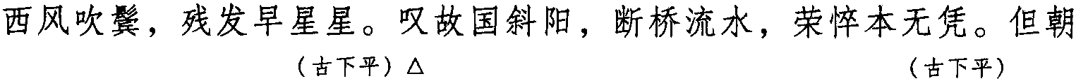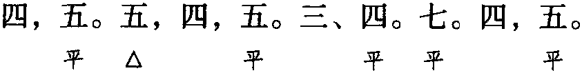 注:本词例押古上平声“真” “文”韵,古下平声 “庚” “青” “蒸” “侵”韵。因“真” “文”“庚”“青”“蒸” “侵”与现代韵“声”或“根”属宽韵,故全调可押东部“声” 韵或根部“根” 韵。