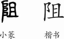 “阻”是形声兼会意字。小篆从阜(左阝),且声,且兼表高起之意。隶变后楷书写作“阻”。