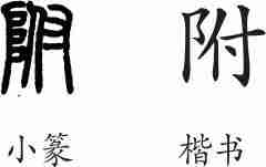 “附”是形声字。小篆从(左阝),付声。隶变后楷书写作“附”。