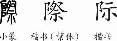 “际”是形声字。小篆从(左阝,表示墙),祭声。隶变后楷书写作“際”。汉字简化后写作“际”。