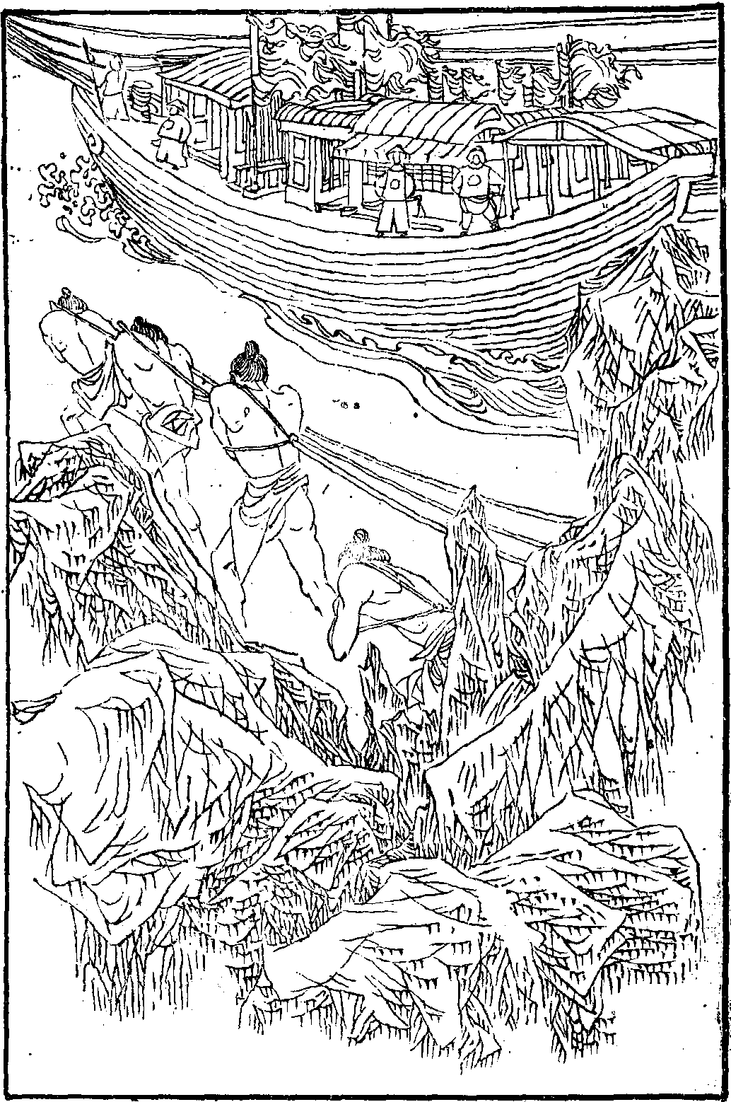 战舰排江口。正天边、真王拜印,蛟螭蟠钮。征发棹船郎十万,列郡风驰雨骤。叹闾左、骚然鸡狗。里正前团催后保,尽累累、锁系空仓后。捽头去,敢摇手? 稻花恰趁霜天秀。有丁男、临歧诀绝,草间病妇。此去三江牵百丈,雪浪排樯夜吼。背耐得、土牛鞭否?好倚后园枫树下,向丛祠、亟倩巫浇酒。神祐我,归田亩。