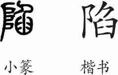 “陷”是会意兼形声字。小篆从,从臽,臽兼表声。隶变后楷书写作“陷”。
