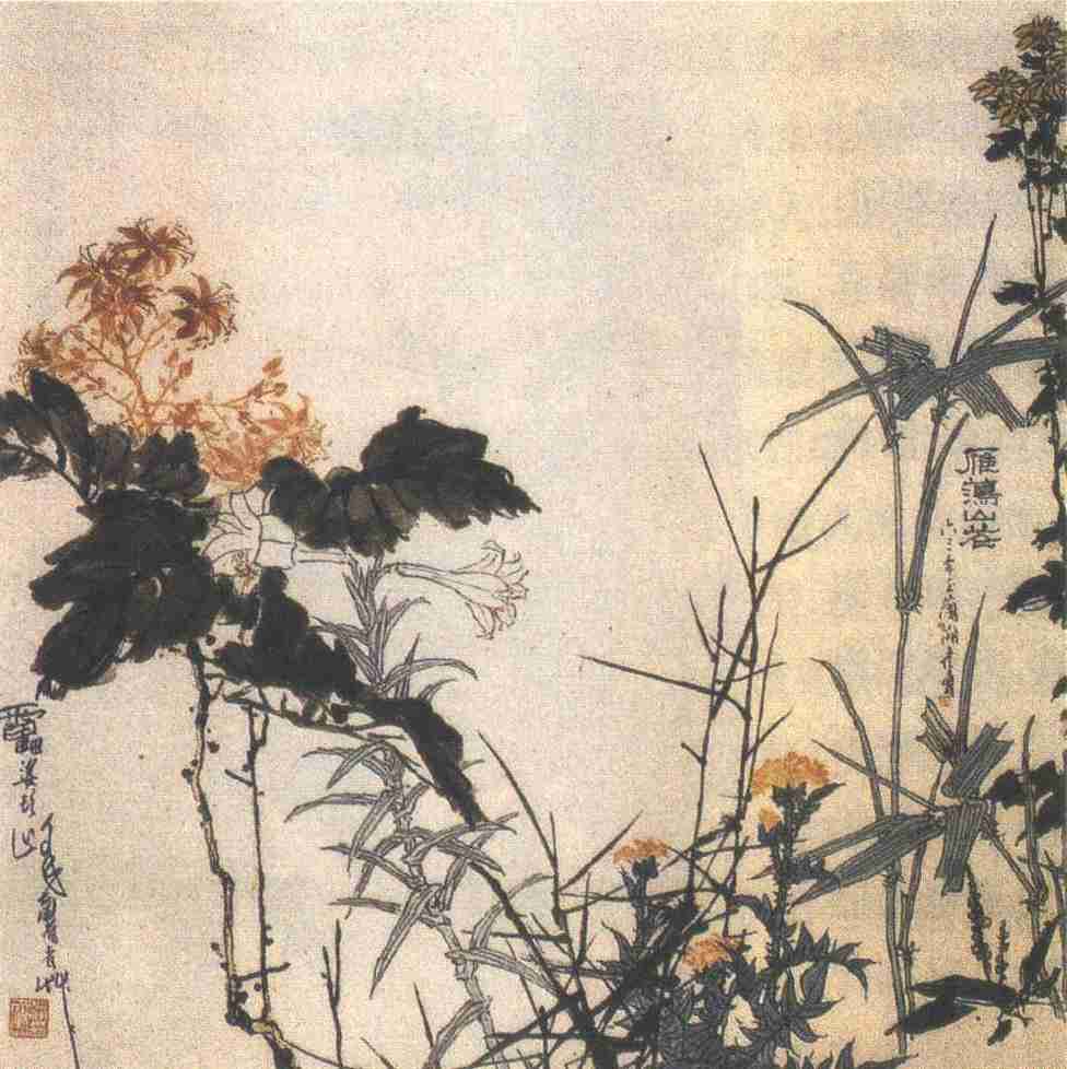 花鸟画在新中国的发展,由于题材的原因,没有得到像山水画和人物画那样的高度重视。尽管齐白石受到了各界的好评,被称为“人民艺术家”,但是并没有因此而带动花鸟画发展的重大突破。陈之佛的工笔花鸟既融汇了日本画的风格,又拓展了题材,取得了突破性的发展,但仍然没有得到应有的重视。其他如王雪涛、郭味渠等也都作了各自的努力,表现了独特的个人风格,但同样伴随着时代而沉寂。潘天寿却以现实中的雁荡山花突破了传统花鸟画的格局和程式,表现出了时代所要求的新意,同时,又融合了山水,使题材间的交互作用在个人风格的创造中成为一个前无古人的变革,开创了花鸟画革新中的一条大道。