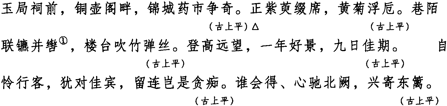 注:一、本词例押古上平声“支”韵。因“支”在现代韵中与“衣” 同韵,故全调可押衣部“衣” 韵。