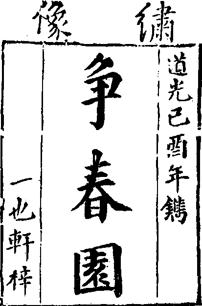 清道光二十九年(1849)一也轩刊本《争春园》扉页书影
