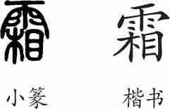 | 诗文 | 《霜》字义,《霜》字的字形演变,小篆隶书楷书写法《霜》 |