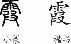“霞”是形声字。小篆从雨,表示与云雨有关,叚声。隶变后楷书写作“霞”。
