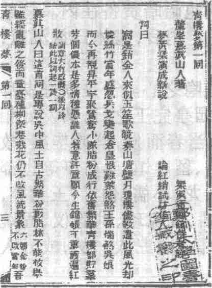 清光绪木活字本《青楼梦》扉页书影
