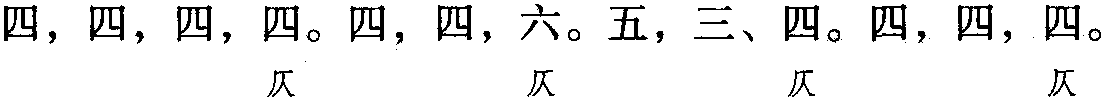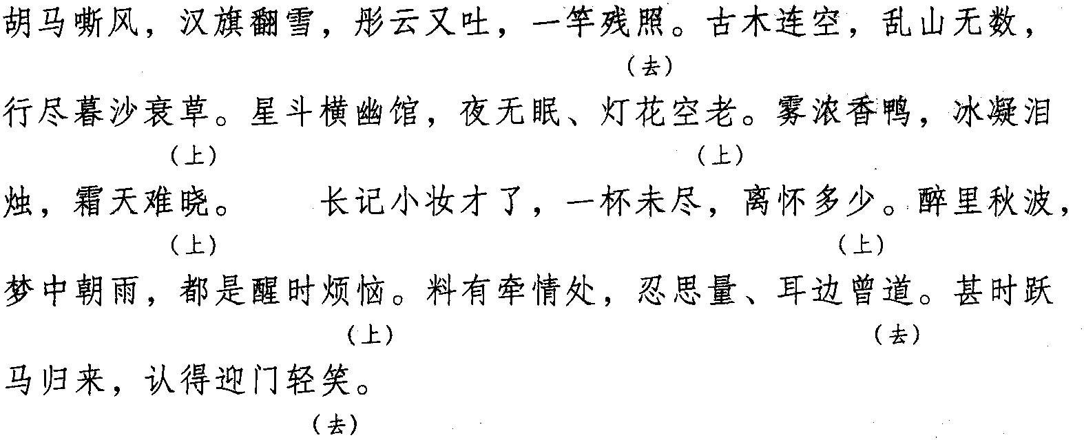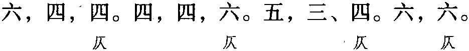 本格双片一百零六字。全词同韵,仄韵,韵字可上声、可去声,秦观词字句韵脚略异。另有一百零五字、一百零七字体,其字句略异,见曹祖、张纲等词。