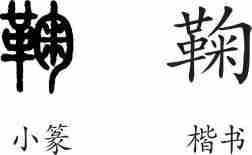 “鞠”是形声兼会意字。小篆从革,匊声,匊兼表转曲之意。隶变后楷书写作“鞠”。