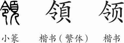 “领”是形声字。小篆从頁(人头),令声。隶变后楷书写作“領”。汉字简化后写作“领”。