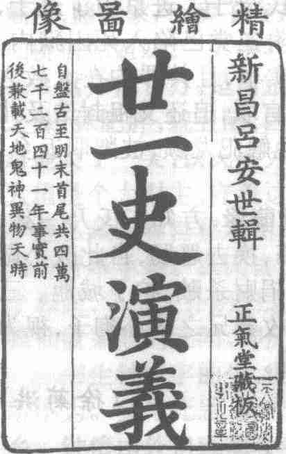 清代文言长篇历史演义小说。原名《纲鉴廿一史通俗衍义》、《廿一史演义》,一名《纲鉴通俗演义》、《纲鉴演义》、《纲鉴廿四史通俗演义》,又名《历朝史演义》、《中国历代兴亡鉴通俗演义》。二十六卷四十四回。题“新昌吕抚安世辑,男维城京周、维垣辅周、维基起周同校”。作者吕抚,字安世,浙江新昌人。成书于清雍正十年(1732)。