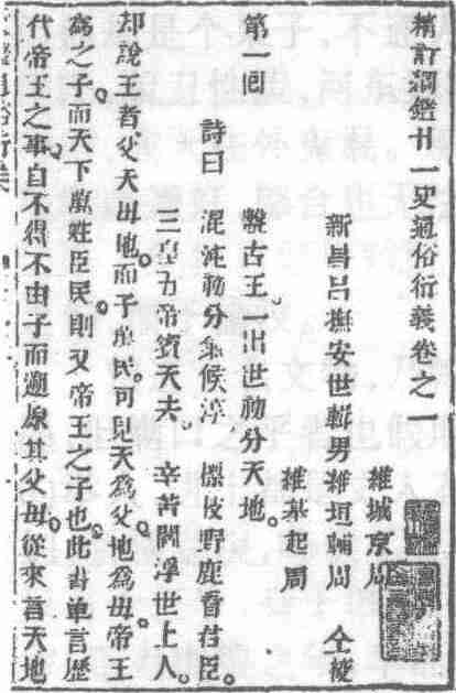 清正气堂活字本《二十四史通俗演义》扉页书影