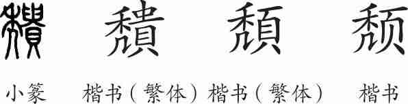 “颓”是形声兼会意字。小篆本从秃,贵声。隶变后楷书写作“穨”。俗改为“頽”,从秃,从頁(头),会秃头之意。汉字简化后写作“颓”。