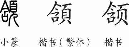 “颔”是形声字。小篆从頁(人头),含声。隶变后楷书写作“頷”。汉字简化后写作“颔”。