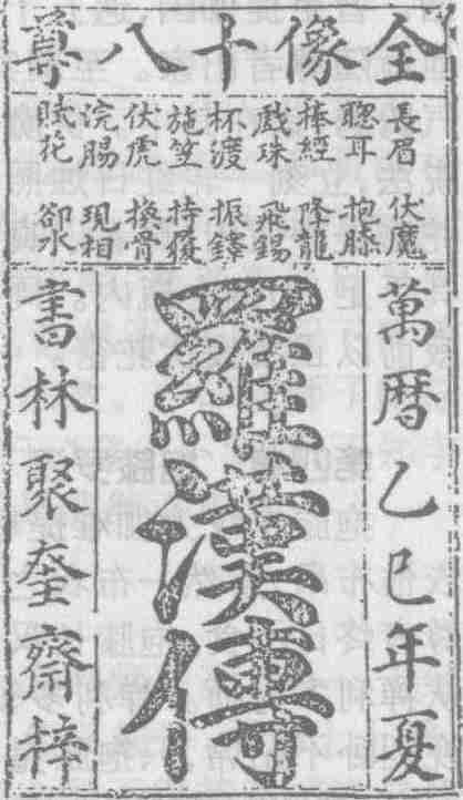 明万历三十三年(1605)书林聚奎斋杨氏清白堂刊本《二十四尊得道罗汉传》扉页书影