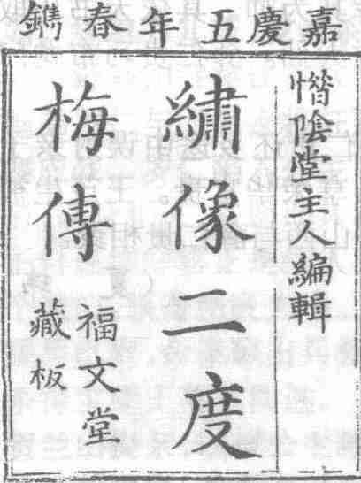 清嘉庆五年(1800)福文堂藏板本《二度梅全传》扉页书影