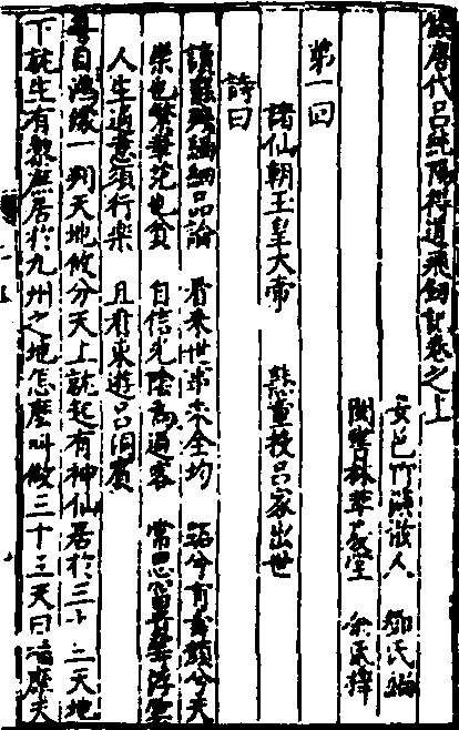 明代白话长篇神魔小说。全称《唐代吕纯阳得道飞剑记》,一名《吕仙飞剑记》、《吕纯阳飞剑记》。两卷十三回。题“安邑竹溪散人邓氏编,闽书林萃庆堂余氏梓”。邓氏即邓志谟,字景南,号百拙生,一号竹溪散人,江西饶州府安仁县人。成书于明万历年间。