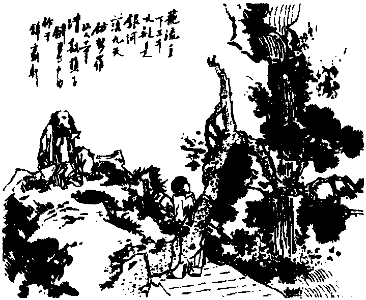 【鉴赏】 银白色的瀑布,从山顶飞奔而下,直落三千尺,仿佛是银河从九重天上飞落而下。九天: 九重天,指天的最高处。“飞流直下三千尺,疑是银河落九天”这是李白吟咏庐山瀑布的名句,描写庐山瀑布的雄壮,气势豪放奔腾。这二句诗也充分流露出作者李白胸襟的豪放不羁与才气的潇洒自如。诗人以高度夸张的艺术手法,将飞流直下的瀑布,描写得奇丽雄伟,气象万千,宛如一幅生动的山水画。