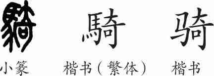 | 诗文 | 《骑》字义,《骑》字的字形演变,小篆隶书楷书写法《骑》 |