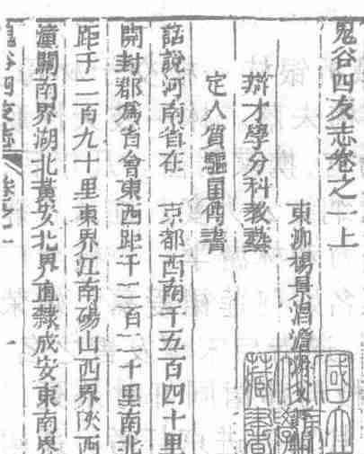 河南开封东南隅嵩山之麓有一地曰鬼谷,内有隐者自号鬼谷子,相传姓王名栩,晋平公时人,曾在云梦与墨翟一同采药修道。鬼谷子才学渊博,欲度几个聪明弟子同归仙境,故借鬼谷栖身。前来求学者不计其数,其中有四个有名的弟子,即孙膑、庞涓、苏秦、张仪。