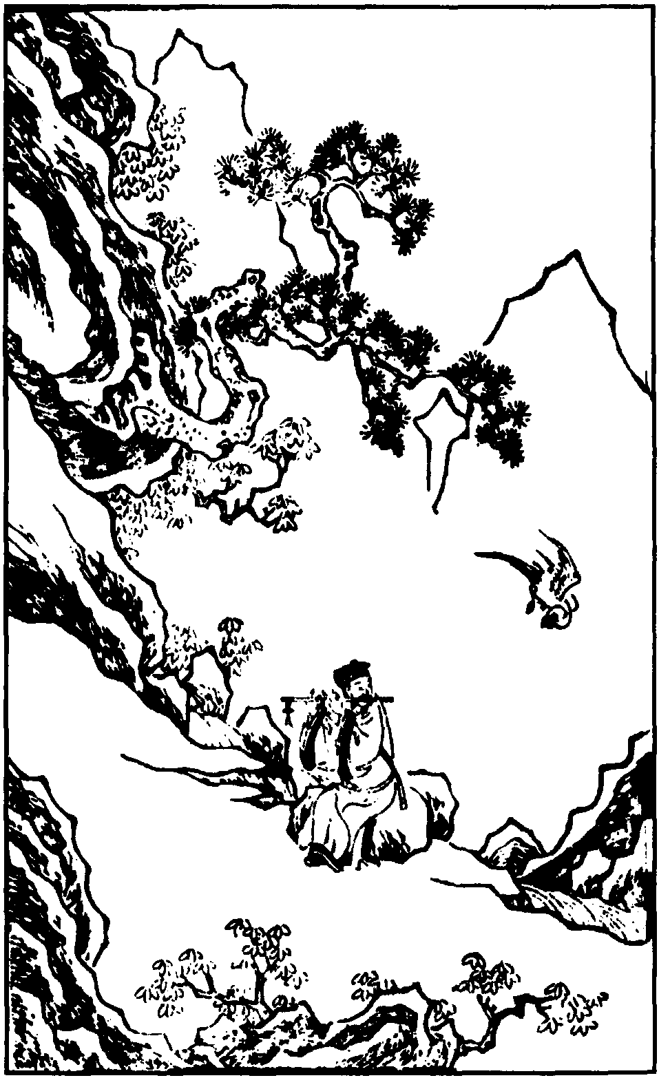 【柳叶儿】 他把我比自己的前程偅, 借曹公骂前日的当轴冬烘。我苦肯与那邺中七子同供奉,那曹公怕不似那豪总制,爽胡公,把戆文长十分的信任尊崇。(鹉飞上,生吹笛,同行,又入内,白)祢先生,你索性把曹丞相做人细说一番。